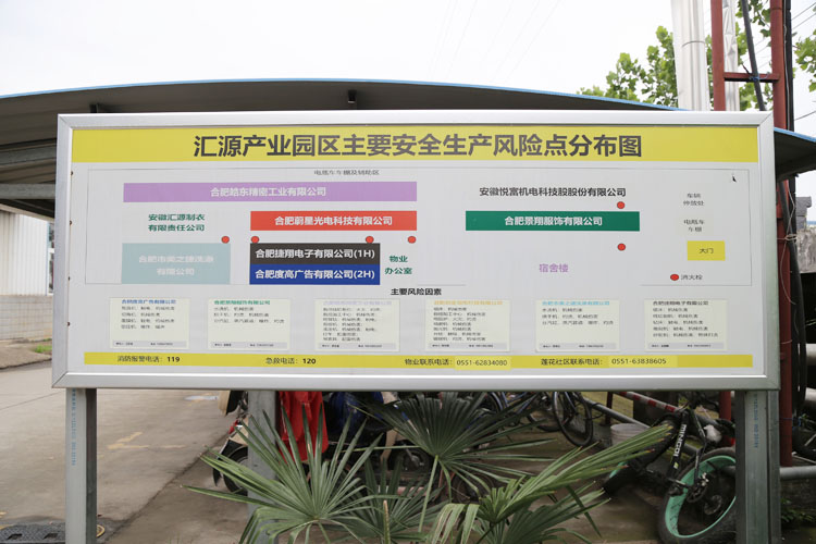 為了更好的掌握園區(qū)存在的主要風(fēng)險,突出安全重點,宇鵬物業(yè)公司還安排專人到園區(qū)內(nèi)各企業(yè)去實地走訪查看,分析研判存在的主要風(fēng)險點,并標(biāo)記、制作成展板,張貼在園區(qū)顯目位置,時刻提醒企業(yè)員工知曉安全、參與安全、監(jiān)管安全。